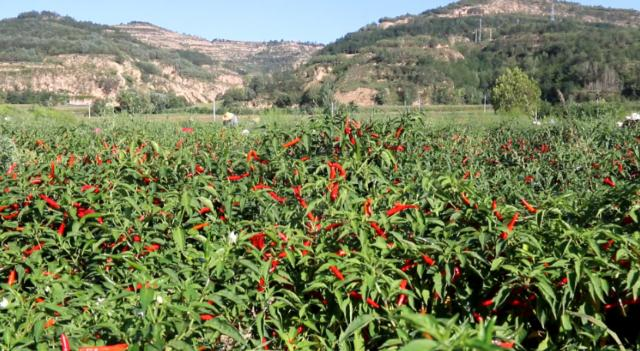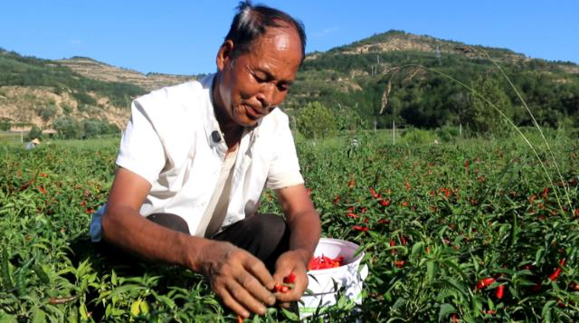 金秋時(shí)節(jié),在吉峴鎮(zhèn)丑家川村的朝天椒種植基地,連片的辣椒長(zhǎng)勢(shì)喜人。今年64歲的村民杜晨亮忙碌地采摘已紅透的辣椒。