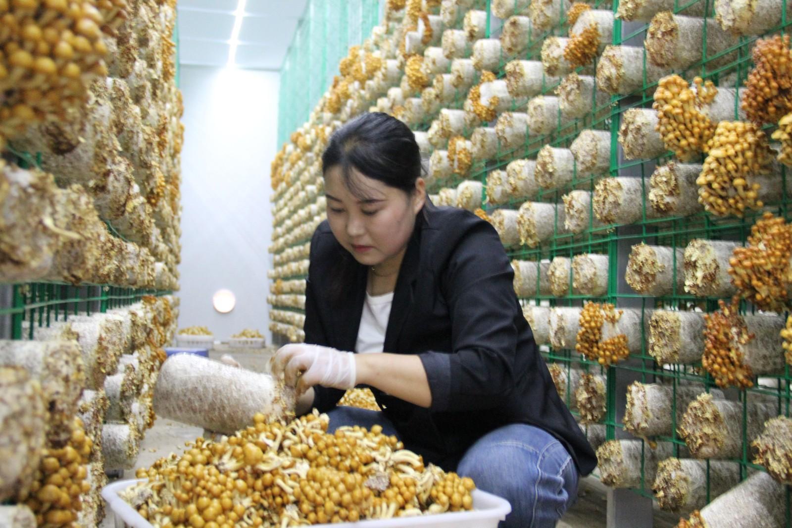 一排排智能菇房整齊排列,恒溫恒濕的環(huán)境下,圓潤飽滿的姬菇、雙孢菇破土而出,工人們手法嫻熟地采摘分揀,歡聲笑語中洋溢著豐收的喜悅。