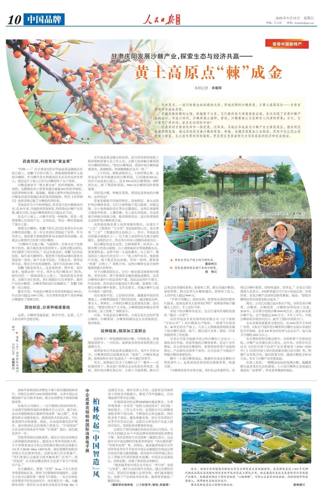 記者來到甘肅省慶陽市一探究竟。近年來,當(dāng)?shù)匾匀A池縣為沙棘產(chǎn)業(yè)主體發(fā)展區(qū),推動周邊各縣協(xié)同發(fā)展。通過系統(tǒng)性完善沙棘的育苗、種植、采摘及深度加工全鏈條,慶陽不僅讓荒山禿嶺披上綠裝、水土流失得到有效遏制,更是將生態(tài)效益轉(zhuǎn)化為實實在在的經(jīng)濟和社會效益。