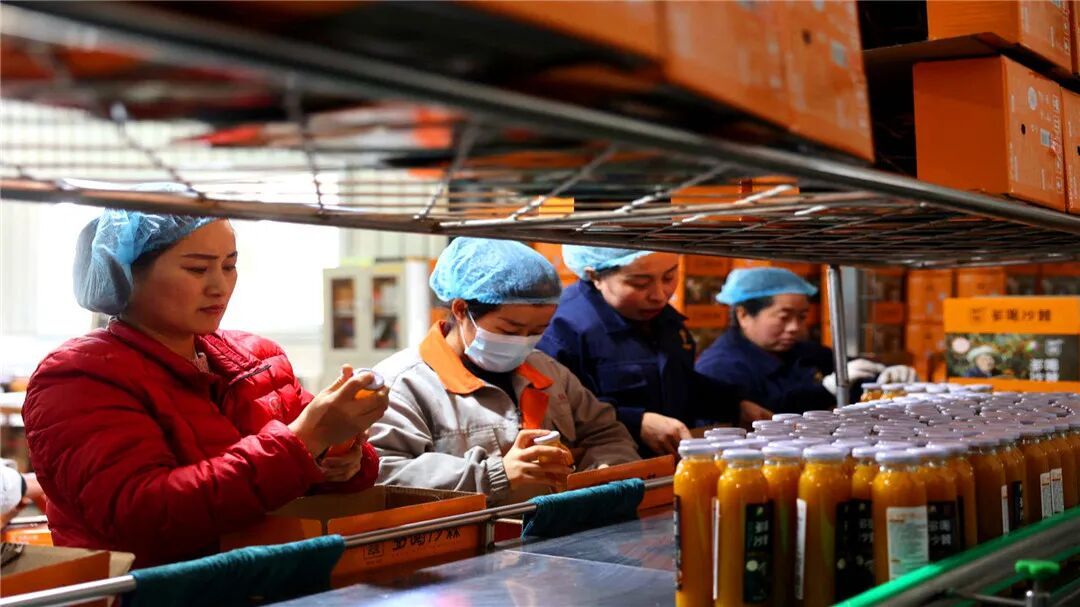 企業(yè)發(fā)展直接惠及當(dāng)?shù)卮迕瘛T?000多平方米的廠房里,9條生產(chǎn)線所用沙棘果和沙棘葉全部從本地村民手中收購。還有100多名村民參與企業(yè)生產(chǎn),每人每月可增收3500元以上。