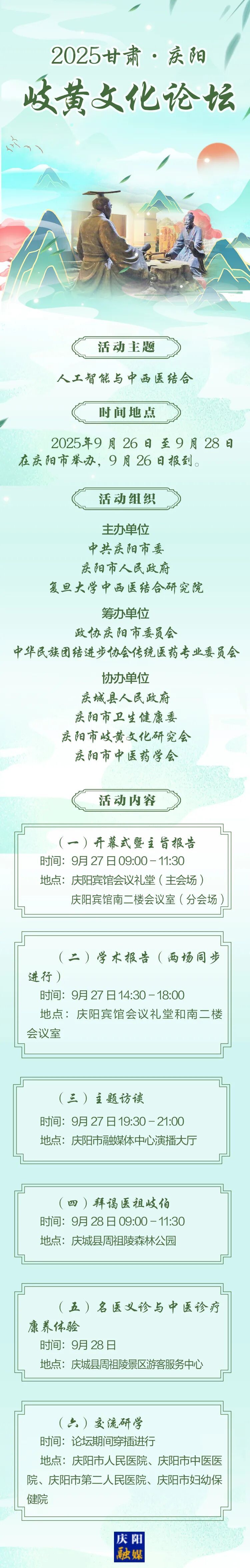 2025甘肅·慶陽(yáng)岐黃文化論壇活動(dòng)安排出爐!亮點(diǎn)速覽→