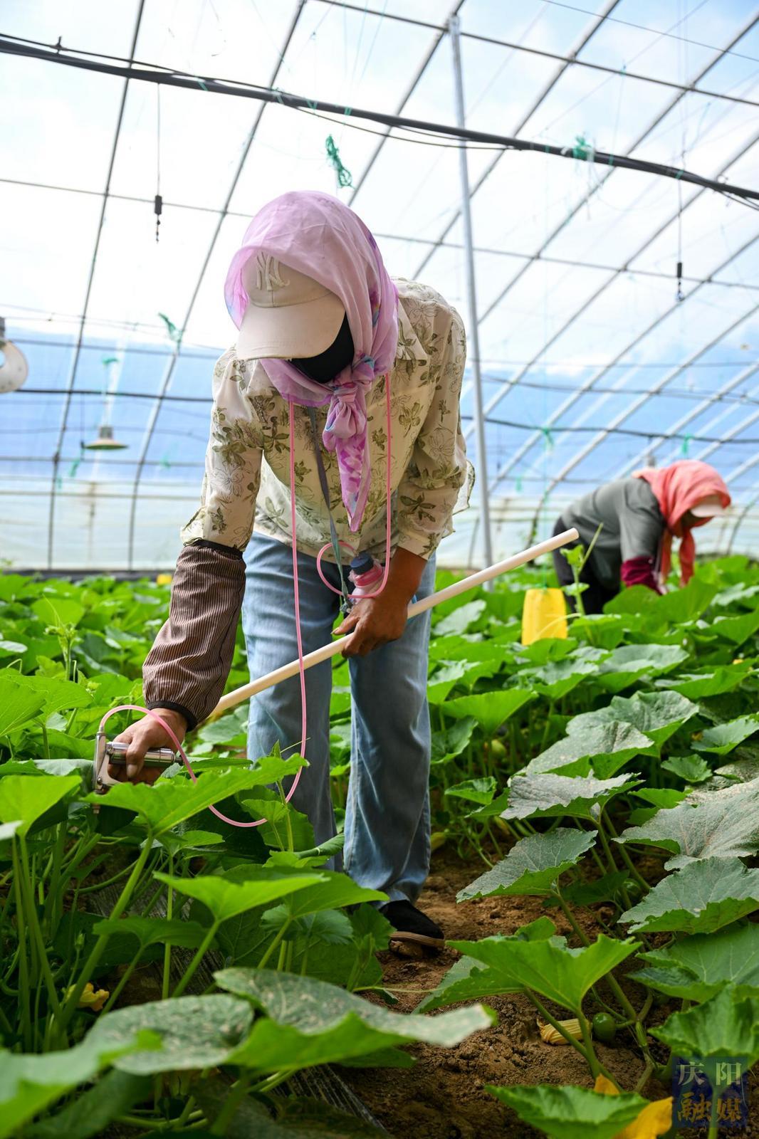 工人管護(hù)貝貝南瓜。