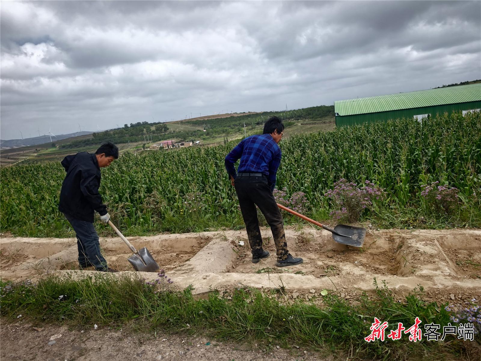小南溝鄉(xiāng)天子渠村民汪耀等人正在清理樹畦。文中圖片由環(huán)縣融媒體中心提供
