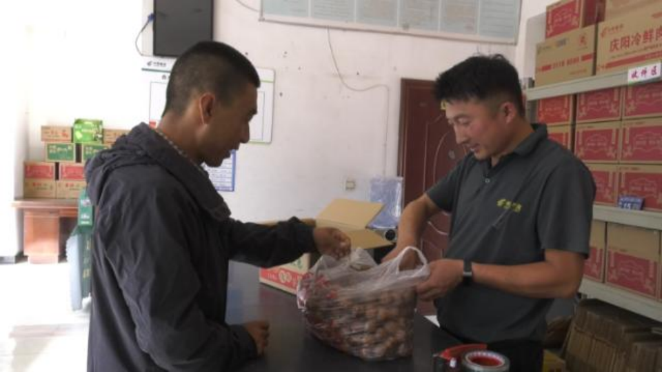 賈占鵬是板橋鎮(zhèn)曹塬村村民,平時主要靠種地和發(fā)展養(yǎng)殖維持家庭收入。今年他家的核桃和杏干產(chǎn)量不錯,但苦于沒有銷路。在得知板橋郵政所可以幫助農(nóng)戶銷售農(nóng)特產(chǎn)品后,賈占鵬便將自家的核桃和杏干拿到了板橋郵政所通過電商進(jìn)行銷售。
