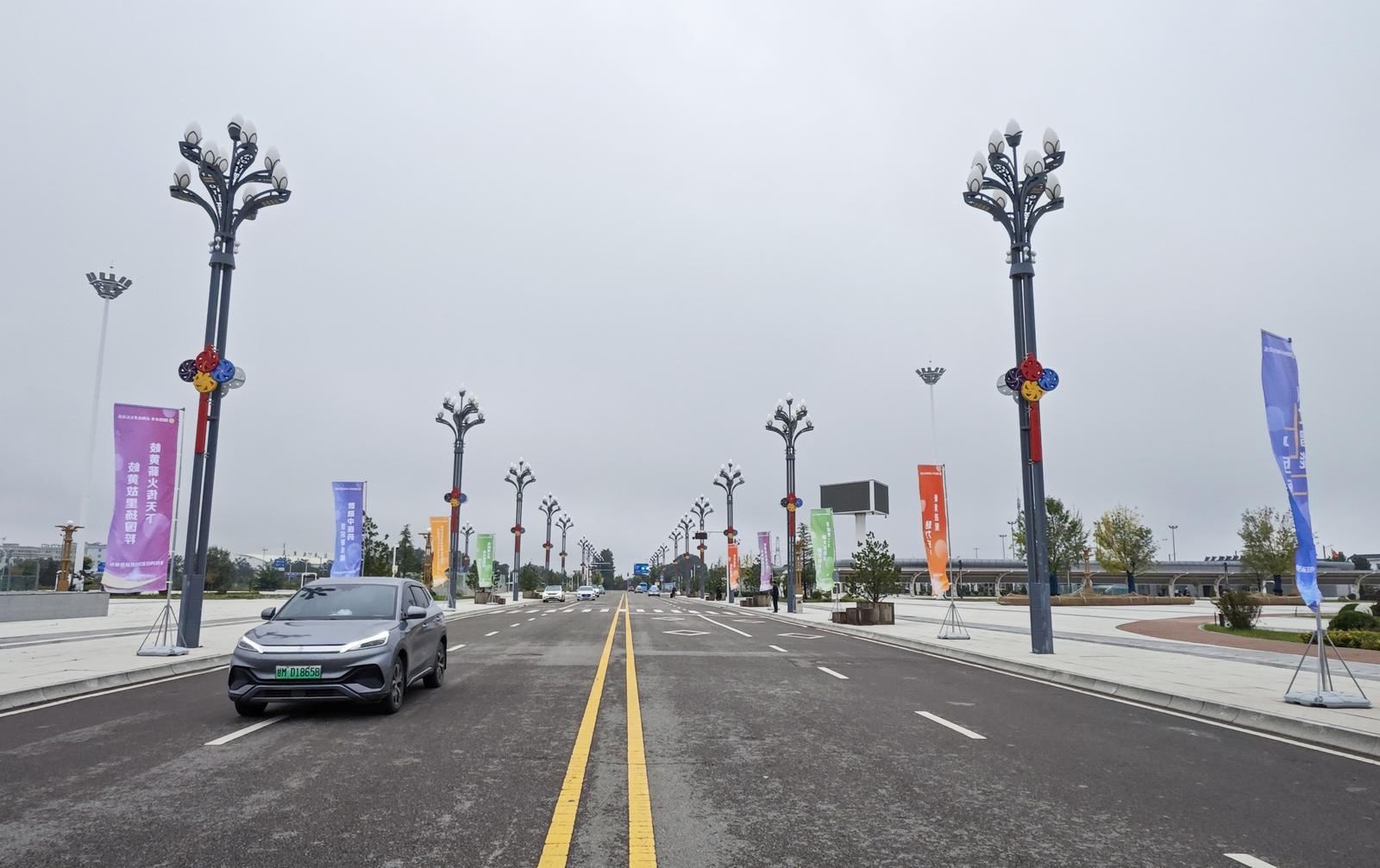 銀西高鐵慶陽站前道路兩邊道旗林立。