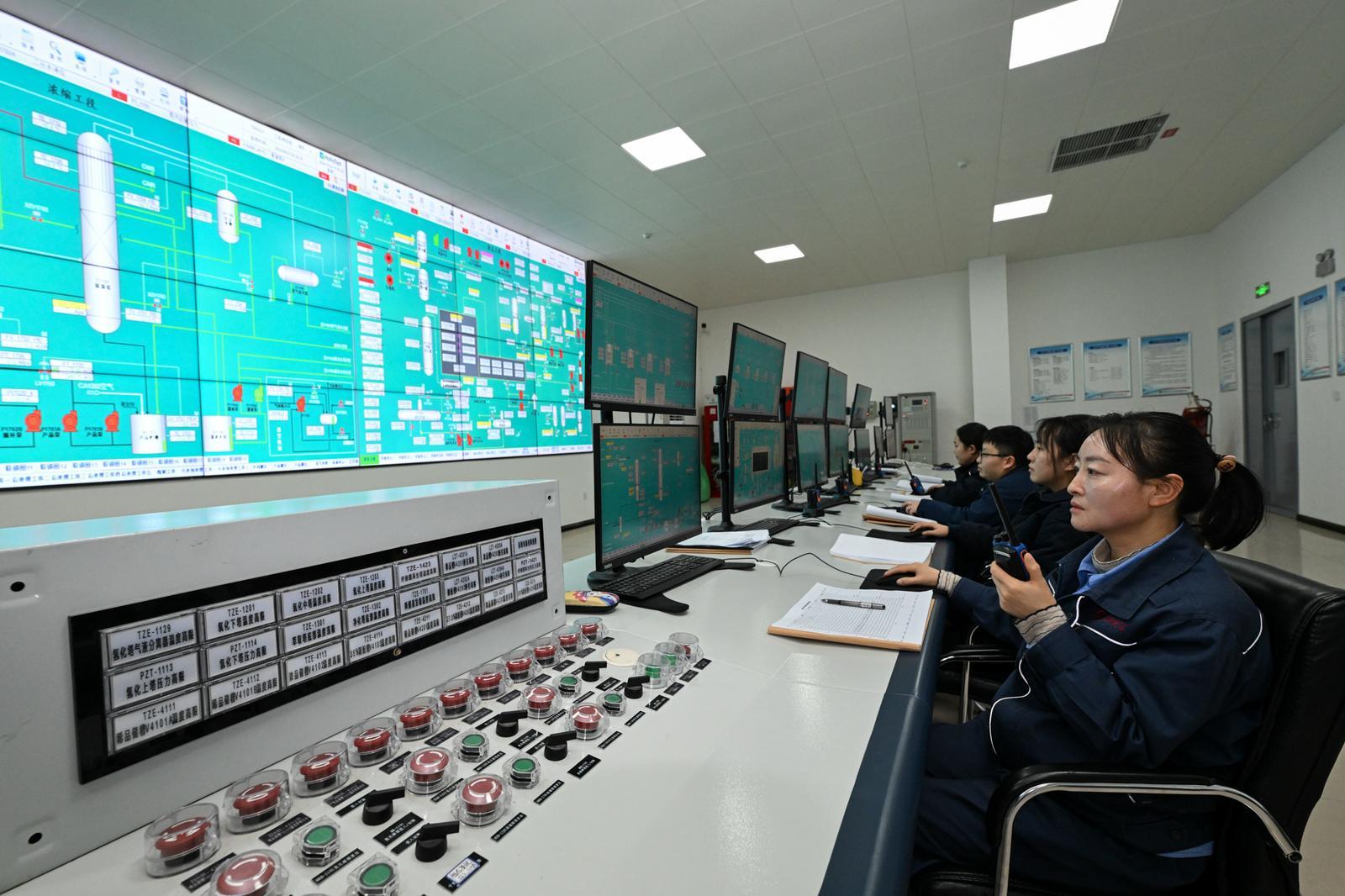 慶陽宏大年產(chǎn)20萬噸雙氧水和2萬噸嗎啉項(xiàng)目總控室。慶陽融媒記者 俄少飛 攝