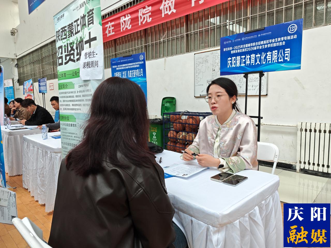 慶陽網(wǎng)訊(慶陽融媒記者 徐嘉英)9月26日,“職引未來-2025年全國城市聯(lián)合招聘高校畢業(yè)生秋季專場活動”暨隴東地區(qū)高校2026屆畢業(yè)生秋季校園雙選會在隴東學(xué)院舉行。本次活動由隴東學(xué)院主辦,甘肅醫(yī)學(xué)院、慶陽職業(yè)技術(shù)學(xué)院、平?jīng)雎殬I(yè)技術(shù)學(xué)院等高校協(xié)辦。