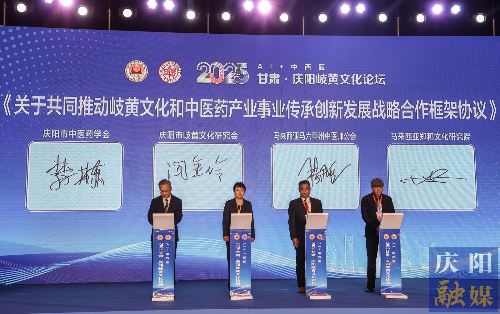 隨后,李隆基主持舉行了簽約儀式。市政府與馬來西亞雪蘭莪州政府簽署《開展算力合作意向書》,市中醫(yī)藥學(xué)會、市岐黃文化研究會與馬來西亞馬六甲州中醫(yī)師公會、馬來西亞鄭和文化研究院簽署《關(guān)于共同推動岐黃文化和中醫(yī)藥產(chǎn)業(yè)事業(yè)傳承創(chuàng)新發(fā)展戰(zhàn)略合作框架協(xié)議》,市中醫(yī)醫(yī)院與馬來西亞大馬衛(wèi)生職業(yè)技術(shù)學(xué)院簽署《合作交流框架協(xié)議》,慶陽神州同泰醫(yī)藥公司與馬來西亞龍馬進(jìn)出口公司簽署《外貿(mào)采購合作協(xié)議》。