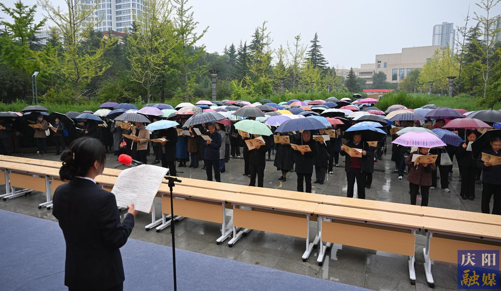 秋雨潤(rùn)澤,更添莊重。全體參與者于綿綿細(xì)雨中齊聲誦讀《論語》經(jīng)典篇章,在朗朗書聲中感悟先賢智慧。儀式還包括向至圣先師行拜師禮、齊誦《橫渠四句》等環(huán)節(jié)?;顒?dòng)尾聲,參與者集體移步慶陽市檔案館,在欣賞《論語》書法長(zhǎng)卷的同時(shí),參觀了“中國(guó)共產(chǎn)黨人的家風(fēng)”檔案展,為這場(chǎng)文化盛宴增添了厚重的歷史維度。