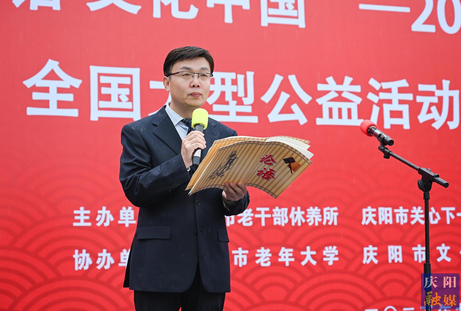 慶陽網(wǎng)訊(慶陽融媒記者 王志龍)9月28日,第九屆“相約論語·文化中國(guó)”——2025年度孔子誕辰日人人讀論語全國(guó)大型公益活動(dòng)(慶陽市分會(huì)場(chǎng))在市人民廣場(chǎng)舉行。本次活動(dòng)以“銀發(fā)青絲共誦經(jīng)典,文化薪火代代相傳”為主題,由慶陽市老干部休養(yǎng)所與慶陽市關(guān)心下一代工作委員會(huì)辦公室聯(lián)合主辦。