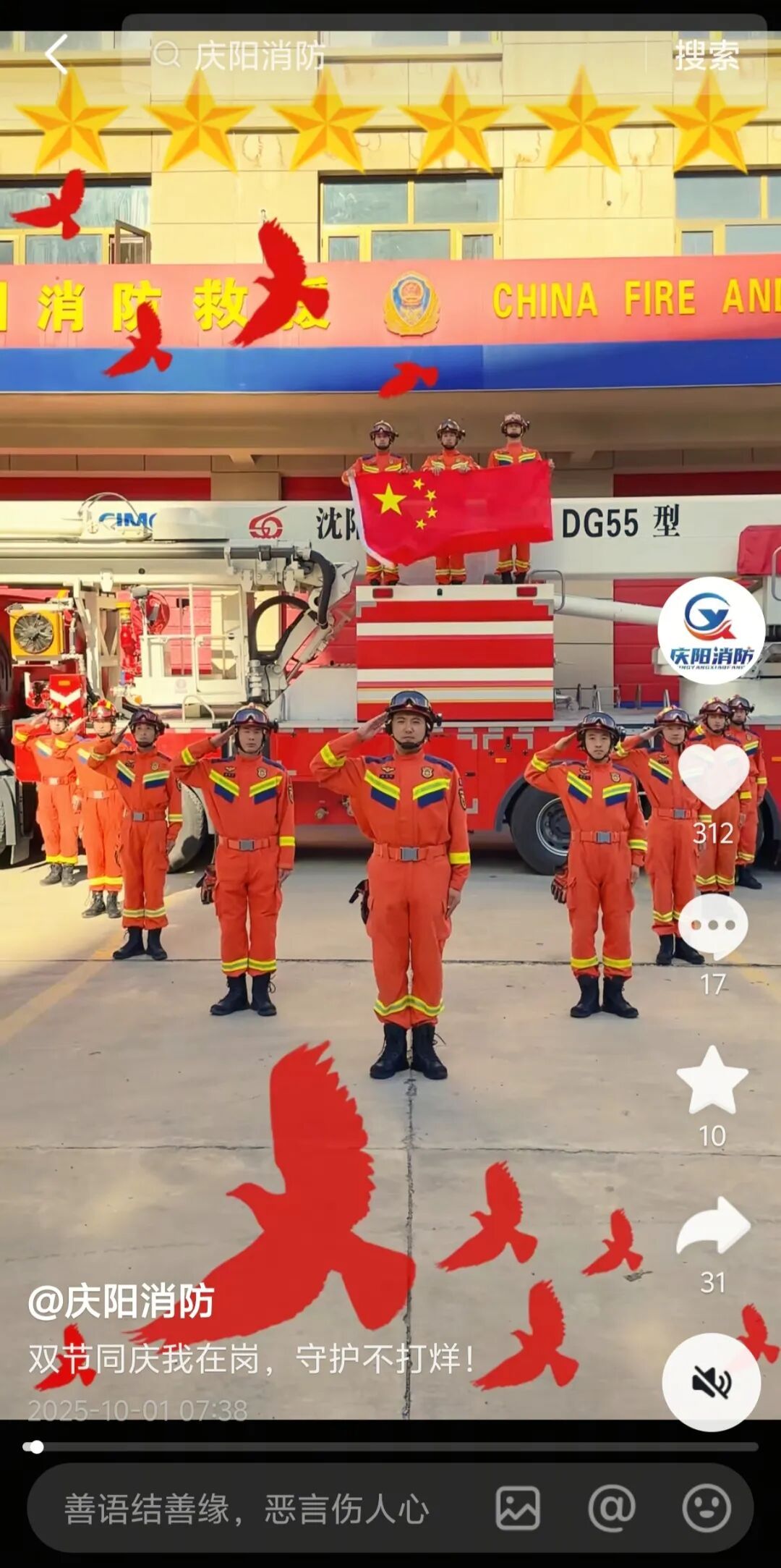 國慶、中秋“雙節(jié)”同慶,舉國上下洋溢著團圓、歡慶的節(jié)日氛圍。慶陽消防全體指戰(zhàn)員恪盡職守,以“節(jié)日我在崗”的擔(dān)當與奉獻,堅守在防火滅火、應(yīng)急救援、消防宣傳和消防服務(wù)的第一線,用忠誠與汗水守護著節(jié)日的安寧與祥和,全力維護隊伍內(nèi)部和社會面消防安全形勢穩(wěn)定。