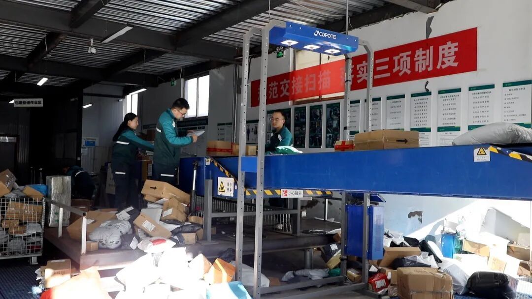 醫(yī)院內(nèi)守護(hù)生命的節(jié)奏緊張有序,街巷間傳遞溫暖的腳步同樣不停。華池縣寄遞共配中心里,傳送帶飛速運(yùn)轉(zhuǎn),分揀員田學(xué)成的雙手在包裹間靈活穿梭,他和工作人員齊心協(xié)力按區(qū)域快速分類,每小時(shí)可完成近300件包裹的分揀任務(wù)。