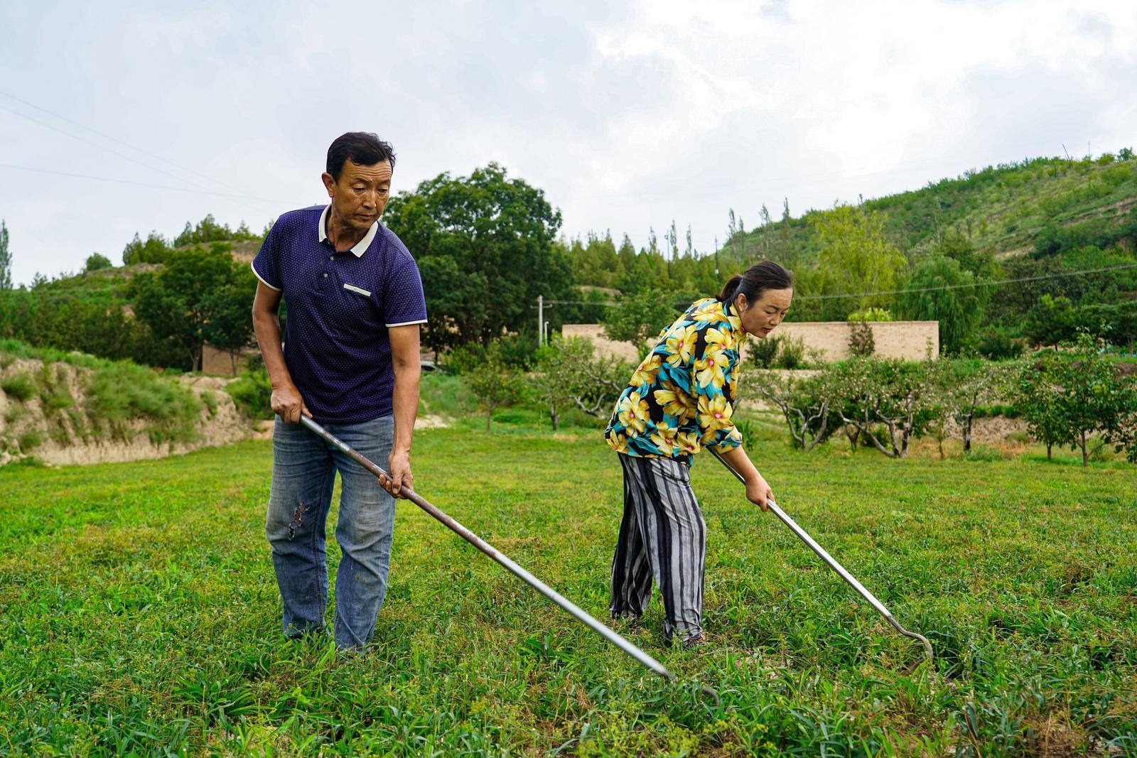 合道鎮(zhèn)唐臺(tái)子村黃麗萍夫婦給藥材鋤草。