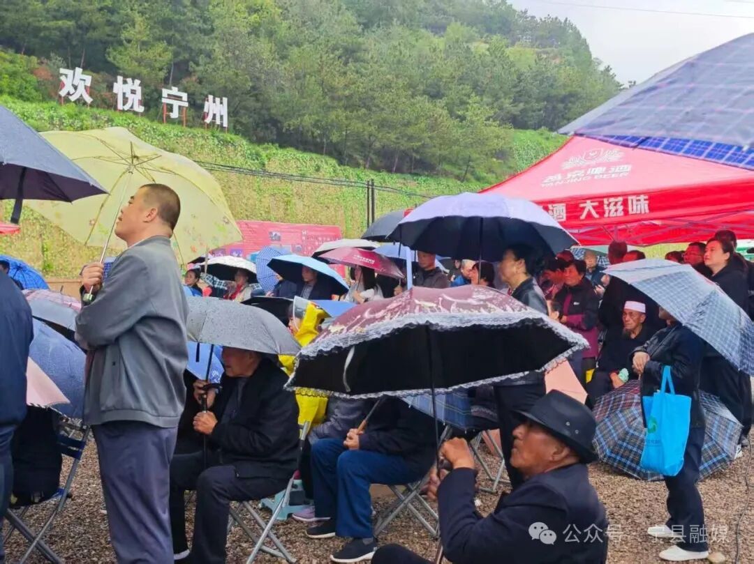 雨絲飄灑,臺下的觀眾們或撐傘靜立,或披雨衣端坐,目光始終聚焦于舞臺,叫好聲掌聲經(jīng)久不息。許多老戲迷情不自禁地跟著哼唱,有的觀眾則紛紛舉起手機(jī)記錄精彩瞬間。鏗鏘的鑼鼓與悠揚(yáng)的唱腔,是獻(xiàn)給祖國母親生日最深情的贊歌;傘下的笑臉與熱烈的掌聲,則是寧縣市民對美好生活與國家富強(qiáng)的共同祝愿。