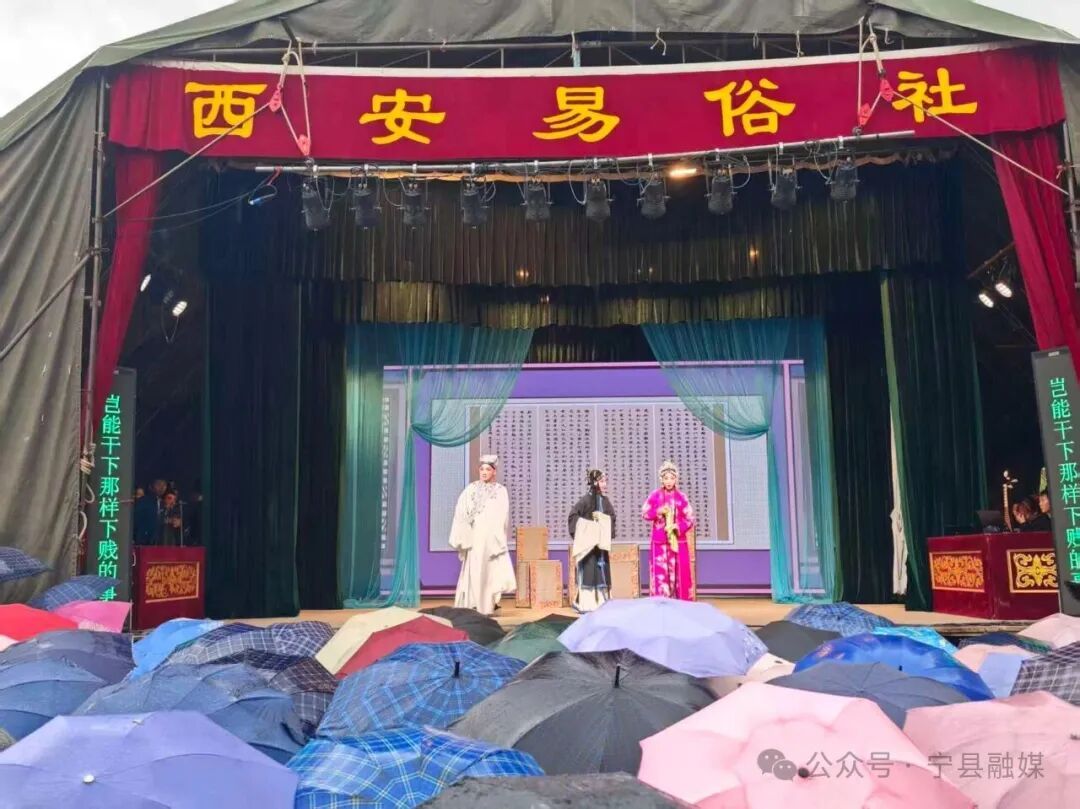 十月的寧縣,秋意漸濃,細(xì)雨霏霏。10月1日,當(dāng)國慶的喜悅彌漫這座小城,歡悅寧州文化創(chuàng)意街區(qū)卻別有一番熱鬧景象——一場由百年名社西安易俗社帶來的折子戲?qū)?,在朦朧雨絲中鳴鑼開唱,為古韻寧州平添了一份獨(dú)特的梨園雅趣。
