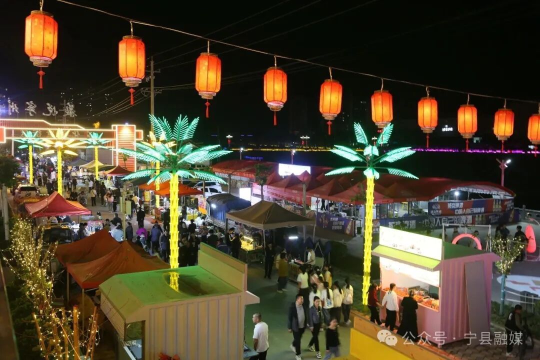 與此同時,街區(qū)另一側的夜市也迎來了它最熱鬧的時刻。各色美食攤位前香氣四溢,地方特色小吃、精致甜點、創(chuàng)意飲品琳瑯滿目,令人食指大動。游客們穿梭其間,或品嘗美味,或挑選心儀的手工藝品,孩子們手持發(fā)光的玩具嬉笑追逐,勾勒出一幅充滿煙火氣的動人畫卷。傳統(tǒng)與潮流在此交匯,歷史與現代在此共鳴,充分展現了寧縣文旅融合發(fā)展的蓬勃生機與無限活力。