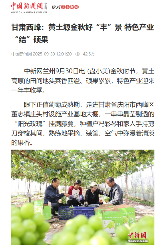 9月30日,“中新網(wǎng)”客戶端發(fā)布《甘肅西峰:黃土塬金秋好“豐”景 特色產(chǎn)業(yè)“結(jié)”碩果》。