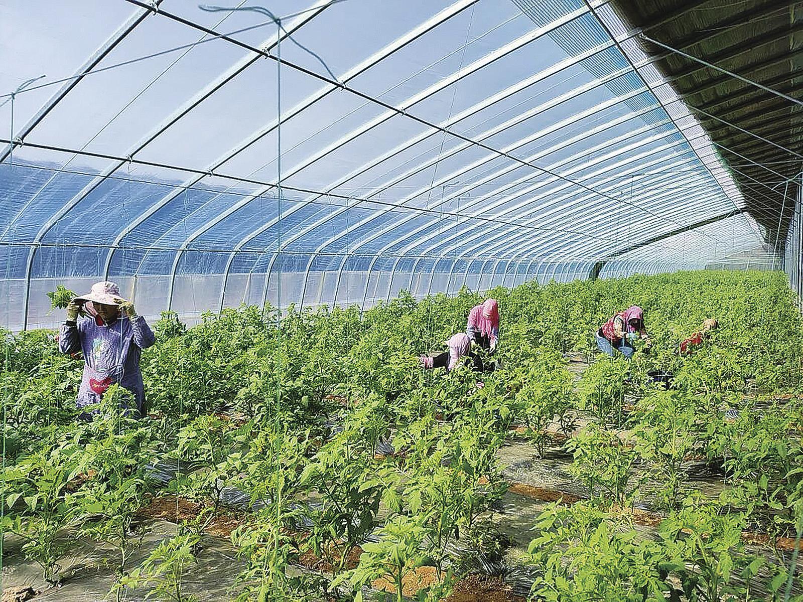 群眾在中原鄉(xiāng)武亭-殿王設(shè)施蔬菜示范園進(jìn)行田間管理。 慶陽融媒記者 張凡 攝