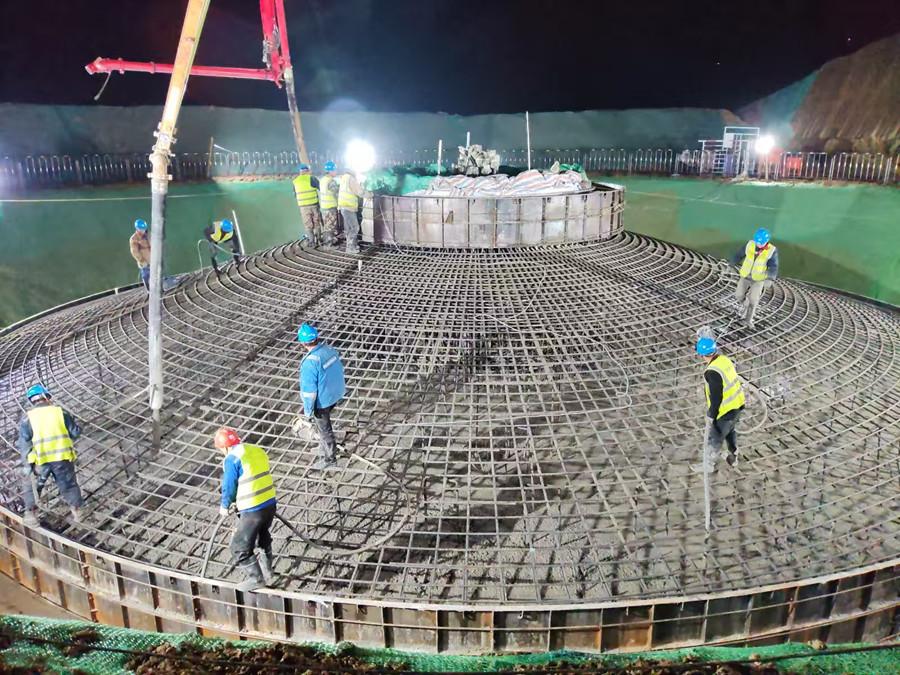 甘肅電投集團(tuán)慶陽“綠電聚合”試點(diǎn)項(xiàng)目?jī)?chǔ)能設(shè)備區(qū)基礎(chǔ)混凝土澆筑。胡國(guó)武攝