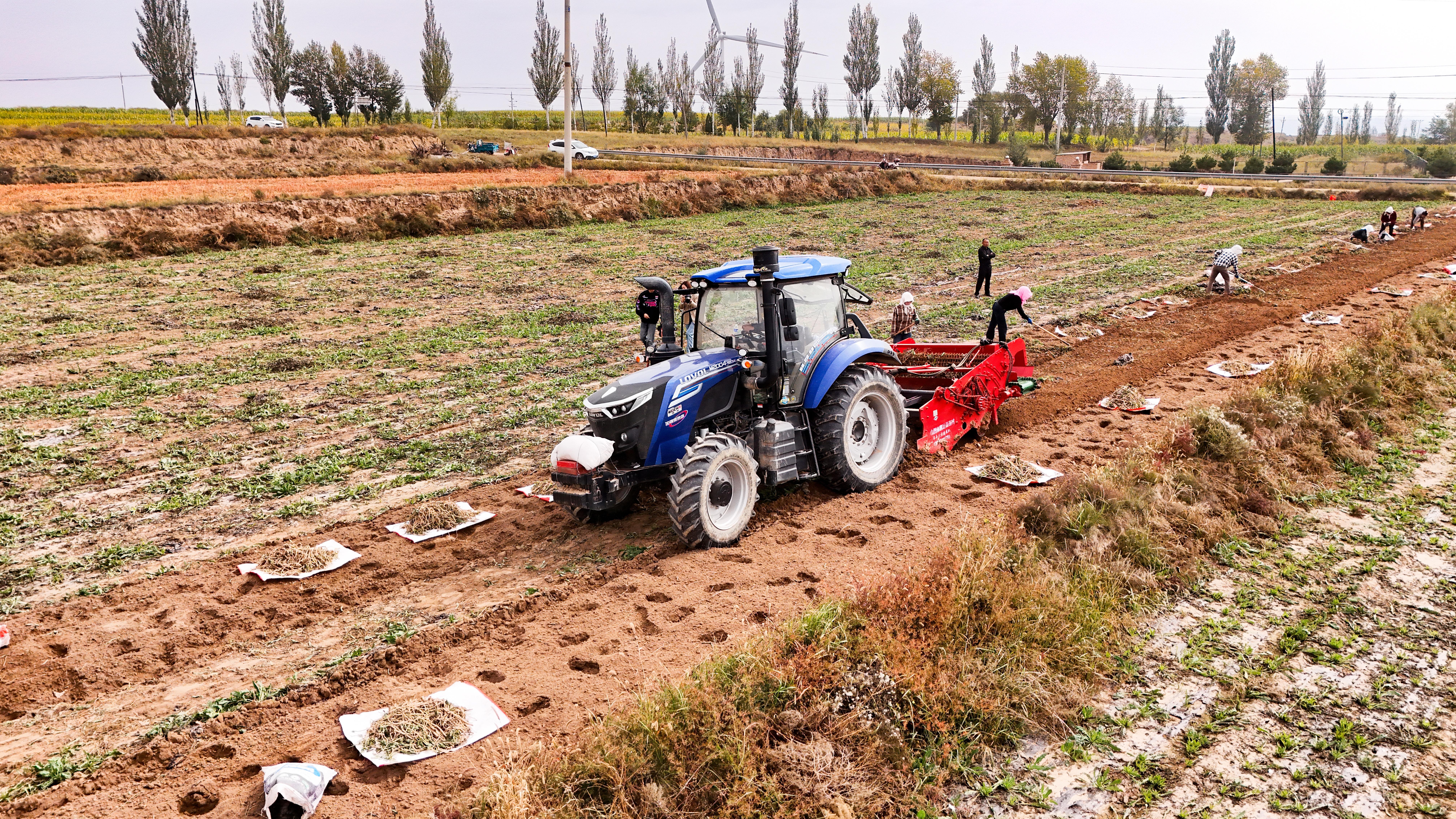 同樣忙碌的還有小南溝鄉(xiāng)。該鄉(xiāng)中藥材基地里,原先的翠綠已變成連片褐色,藥材全面進入采收期。陳掌村馬路塬組村民余有明,每天開著自家采挖機穿梭田間:“這機子是3年前買的,一天能挖十幾畝地,每畝收費200元。尤其是每年后半年,活兒根本干不完。”