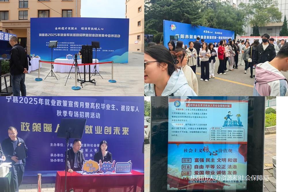 緊盯高校畢業(yè)生、失業(yè)人員等重點(diǎn)群體就業(yè),深入園區(qū)、重點(diǎn)企業(yè),征集就業(yè)崗位,落實(shí)各類就業(yè)創(chuàng)業(yè)政策補(bǔ)貼。助企紓困降成本。深入9家重點(diǎn)園區(qū)(含“東數(shù)西算”產(chǎn)業(yè)園、西峰工業(yè)園區(qū))宣講政策、座談,發(fā)放“政策清單”700余份,公布經(jīng)辦機(jī)構(gòu)聯(lián)系方式;環(huán)縣摸排企業(yè)20家,為14家企業(yè)187名脫貧勞動(dòng)力落實(shí)社保補(bǔ)貼340萬(wàn)元;市人管辦“免申即享”模式幫企業(yè)節(jié)省時(shí)間成本30%以上,達(dá)成合作意向25項(xiàng)。重點(diǎn)群體強(qiáng)幫扶。以隴東地區(qū)高校2026屆畢業(yè)生秋季校園雙選會(huì)為契機(jī),聯(lián)合隴東學(xué)院同步開展“政策暖人心 就業(yè)創(chuàng)未來(lái)——慶陽(yáng)市就業(yè)創(chuàng)業(yè)政策進(jìn)校園(隴東學(xué)院)專項(xiàng)活動(dòng)”;聯(lián)合慶陽(yáng)職業(yè)技術(shù)學(xué)院舉辦以“政策暖人心 就業(yè)創(chuàng)未來(lái)”為主題的就業(yè)政策宣傳月進(jìn)校園專場(chǎng)活動(dòng),覆蓋畢業(yè)生2500余人次、登記就業(yè)意向300余份;正寧縣辦“金秋送崗”招聘會(huì),供崗3500余個(gè)、發(fā)服務(wù)清單5000份;華池縣發(fā)放“政策服務(wù)包”900余份,寧縣、環(huán)縣講解公益性崗位、靈活就業(yè)補(bǔ)貼政策;市就業(yè)局在人防廣場(chǎng)辦活動(dòng),發(fā)放清單3000份、答疑400人;西峰區(qū)進(jìn)社區(qū),接受咨詢1000余人次。權(quán)益保障筑底線。開展人力資源市場(chǎng)專項(xiàng)整治,公布市縣維權(quán)舉報(bào)投訴渠道;招聘會(huì)同步宣傳《中華人民共和國(guó)勞動(dòng)法》《保障農(nóng)民工工資支付條例》,解答維權(quán)疑問(wèn)超300人次。