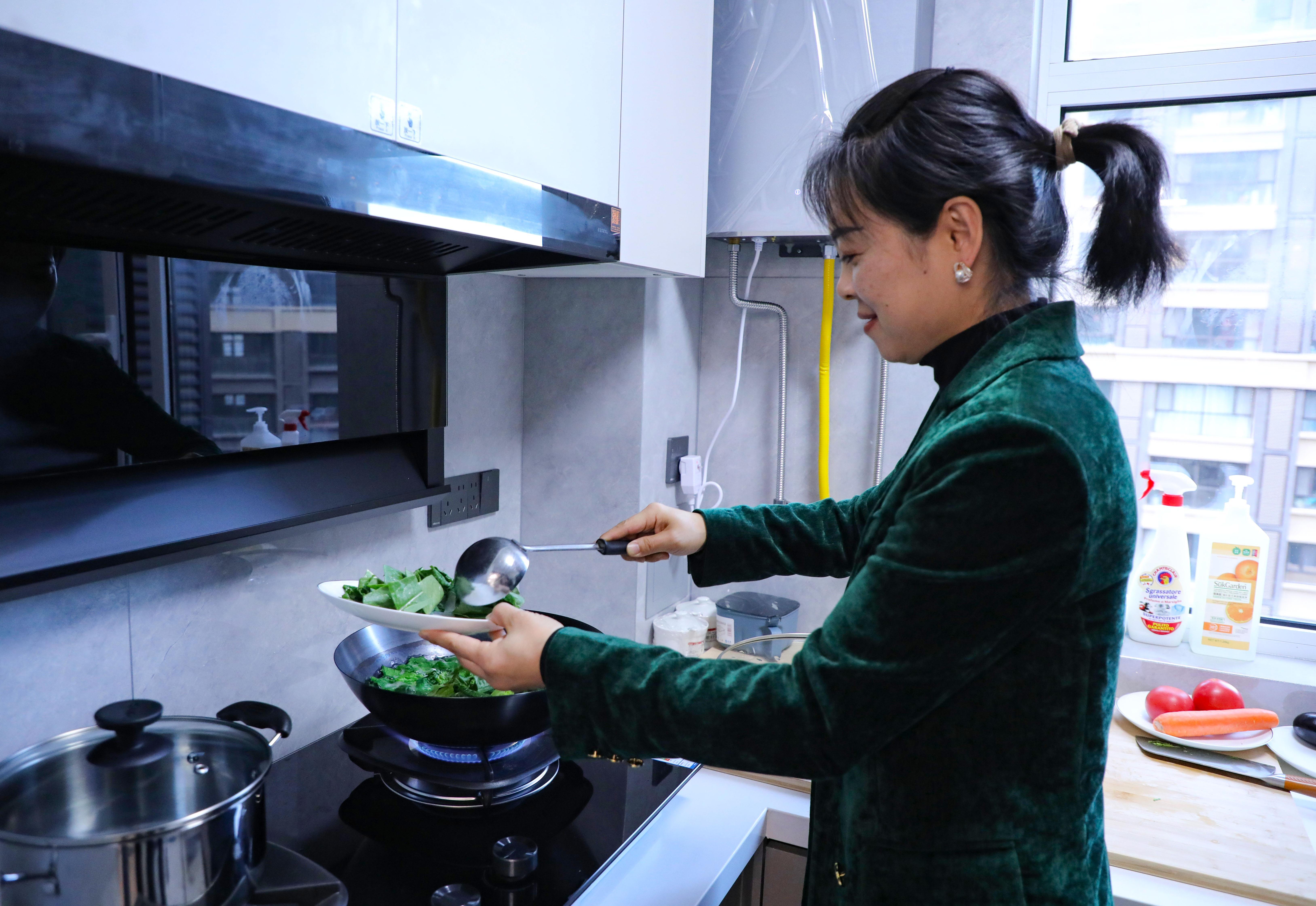 張龍家的廚房里,抽油煙機輕聲嗡鳴,一簇藍色的火焰穩(wěn)定地包裹著鍋底,妻子鄭謾娜正熟練地翻炒著青菜。灶臺旁,是已經(jīng)備好的幾樣小菜。空氣中彌漫的飯菜香,與家人的說笑聲交融,勾勒出一幅尋常卻溫馨的生活圖景。