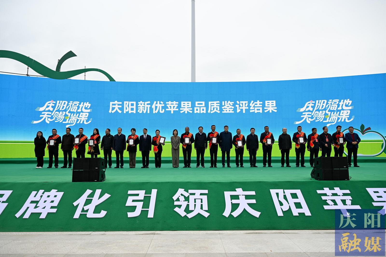 開幕式上,王銳、朱廣義、楊志明、于培順、李華、黃澤元、張建萍、周繼軍、趙立新、李隆基共同啟動開幕。浙江大學(xué)CARD中國農(nóng)業(yè)品牌研究中心研究員、浙江永續(xù)農(nóng)業(yè)品牌研究院副院長賀夢晗,西北農(nóng)林科技大學(xué)蘋果研究中心主任趙政陽分別發(fā)布了慶陽蘋果品牌價值成長報告和慶陽新優(yōu)蘋果品質(zhì)鑒評結(jié)果。北京新發(fā)地農(nóng)產(chǎn)品批發(fā)市場常務(wù)副總經(jīng)理顧兆學(xué),綠萌科技股份有限公司法定代表人張建庭作了發(fā)言。表彰了獲得慶陽新優(yōu)蘋果品質(zhì)鑒評金獎、銀獎、銅獎的企業(yè)、合作社和種植大戶。