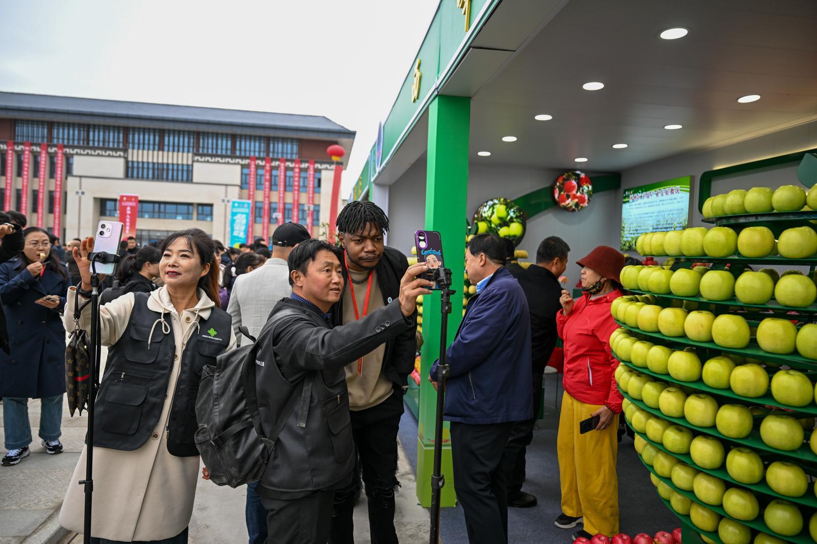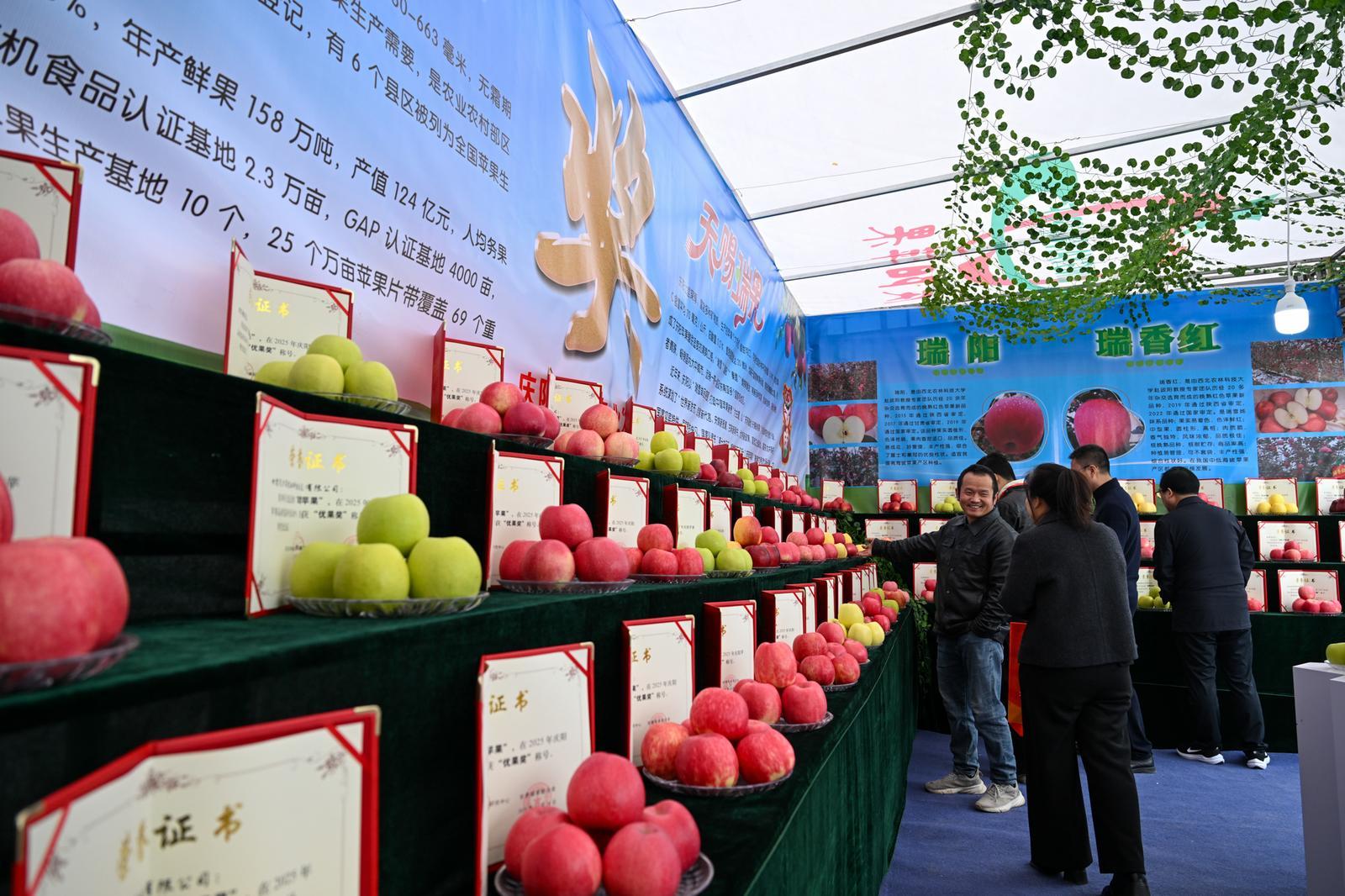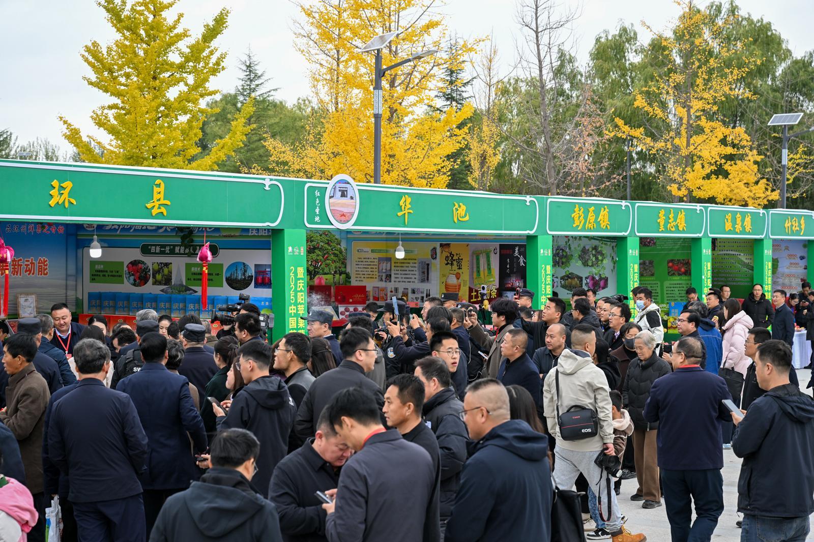 慶陽蘋果展示展銷區(qū)人頭攢動。