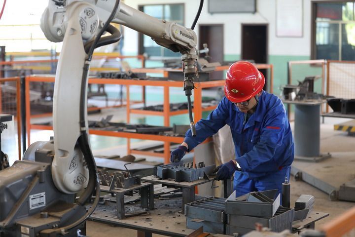 生產車間內,軋機轟鳴,赤紅鋼水化作精密鋼板,銀白色鋁卷在軋輥間穿梭翻飛;戈壁荒灘上,光伏板熠熠生輝,清潔能源輸送全國……