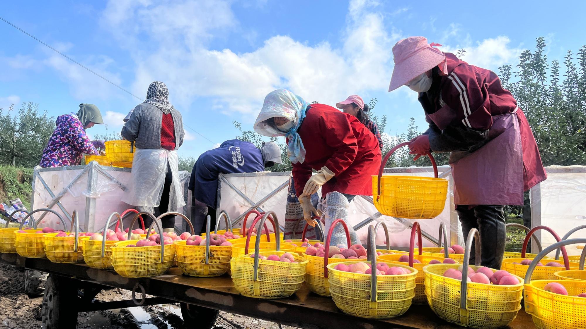 “瑞陽(yáng)和富士現(xiàn)已成熟,正在采收,10月下旬瑞雪也可采摘。今年蘋果畝產(chǎn)約4000斤,總產(chǎn)值達(dá)400多萬(wàn)元。用工高峰期,可為本村及周邊群眾提供80到100個(gè)就業(yè)崗位?!焙献魃缃?jīng)理何治禮說(shuō)。