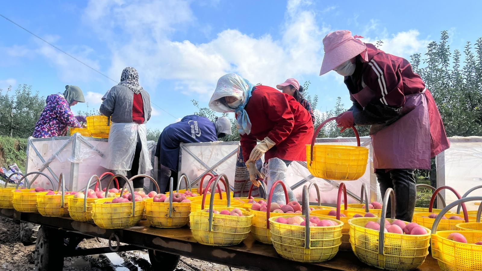 在后官寨鎮(zhèn)溝畎村慶陽春滿園種植養(yǎng)殖農(nóng)民專業(yè)合作社基地里,紅艷艷的蘋果在陽光下泛著誘人光澤。60多名工人正熟練地進行采摘、分揀、運輸,田間地頭處處洋溢著豐收的喜悅。