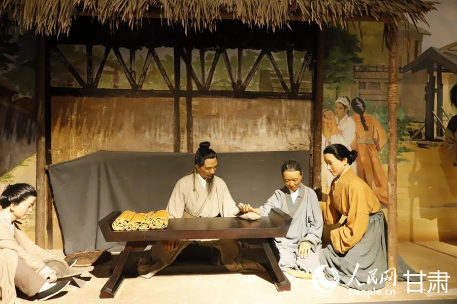 展館內(nèi)皇甫謐治病救人的蠟像復(fù)原場(chǎng)景。人民網(wǎng)記者 焦隆攝
