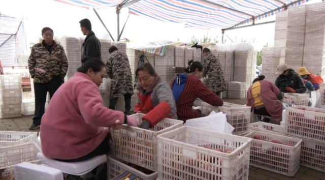 為了降低陰雨天氣對蘋果品質(zhì)造成影響,幫助果農(nóng)盡快將蘋果送往冷庫儲(chǔ)存、實(shí)現(xiàn)錯(cuò)峰銷售,柳家川村第一時(shí)間成立了搶收志愿服務(wù)隊(duì),大家齊心協(xié)力,加快采摘和運(yùn)輸進(jìn)度。