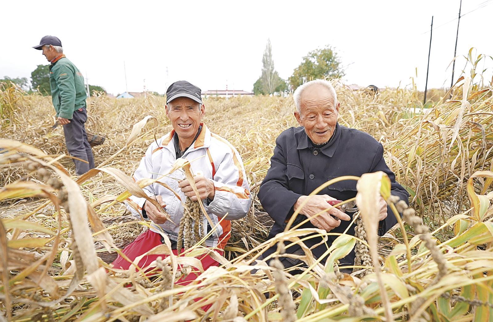 在太莪鄉(xiāng)關(guān)良村的300畝黑小米種植基地,70余名干部群眾抓緊時機(jī),全力搶收成熟的谷子。“今年在天津市紅橋區(qū)的幫扶下,鄉(xiāng)里積極引進(jìn)了由省農(nóng)科院研發(fā)的‘龍谷18號’優(yōu)質(zhì)黑小米品種,免費(fèi)向群眾發(fā)放種子,并以不低于市場價的保底價格統(tǒng)一回收,極大激發(fā)了農(nóng)戶的種植熱情。預(yù)計該品種平均畝產(chǎn)可達(dá)400斤,產(chǎn)業(yè)效益初步顯現(xiàn)?!碧l(xiāng)副書記劉澤含說。