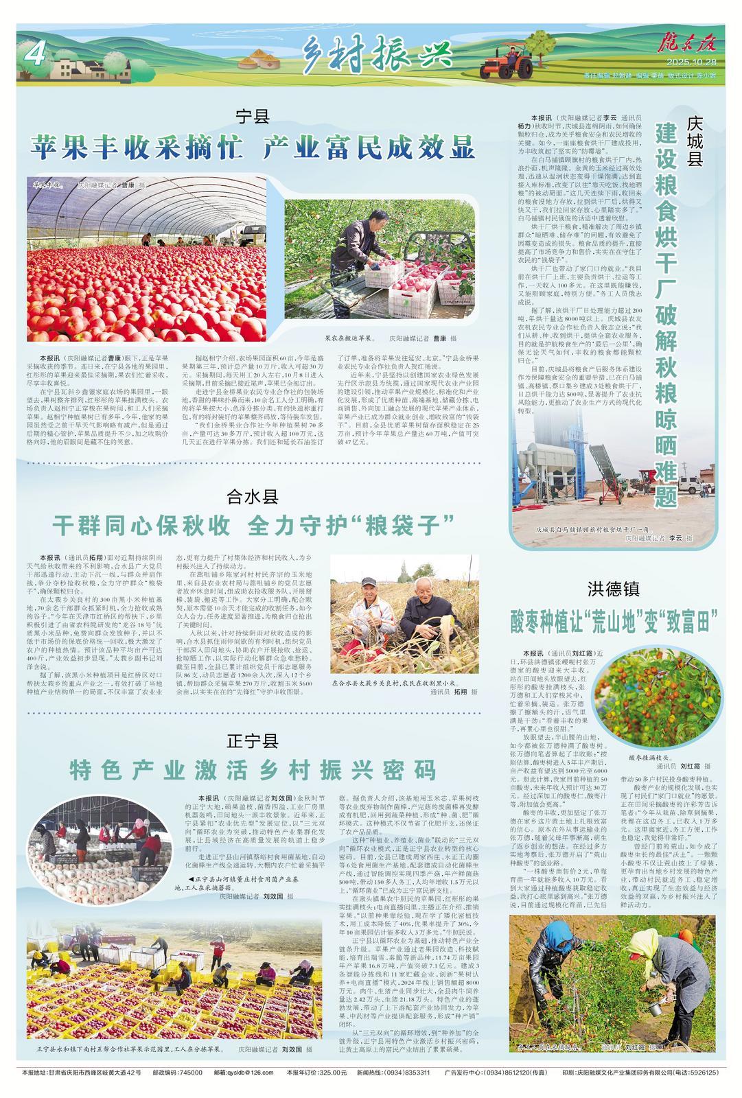 入秋以來,針對持續(xù)陰雨對秋收造成的影響,合水縣抓住雨停間歇的有利時機(jī),組織黨員干部深入田間地頭,協(xié)助農(nóng)戶開展搶收、搶運(yùn)、搶晾曬工作,以實際行動化解群眾急難愁盼。截至目前,全縣已累計組織黨員干部志愿服務(wù)隊86支,動員志愿者1200余人次,深入12個鄉(xiāng)鎮(zhèn),幫助群眾采摘蘋果270萬斤,收割玉米5600余畝,以實實在在的“先鋒紅”守護(hù)豐收圖景。