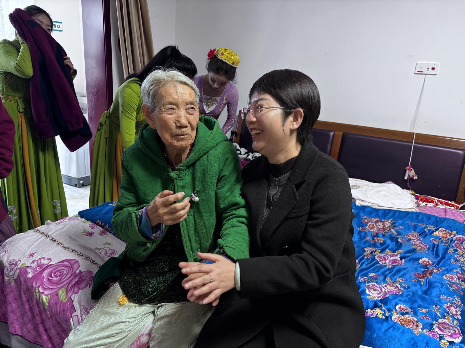 文藝演出結(jié)束后,志愿者們分組行動(dòng),投入到更深入的關(guān)懷服務(wù)中。“交流陪伴組”的同學(xué)們圍坐在老人身邊,耐心傾聽(tīng)他們的往事與心聲,閑話家常,其樂(lè)融融。