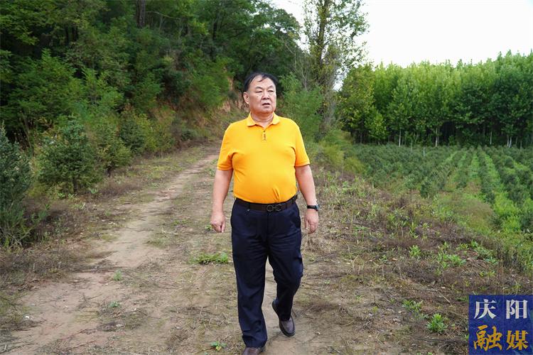 ▲趙發(fā)榮漫步在寧縣桂花塬林場(chǎng)的林間小道。