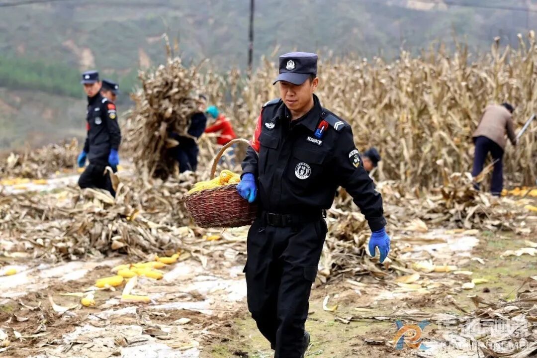 走進(jìn)杜寨子村的農(nóng)田,金黃的玉米隨風(fēng)搖曳,一派豐收景象,“助農(nóng)志愿服務(wù)小隊(duì)”的隊(duì)員們,早早來到玉米地里,在與農(nóng)戶簡單溝通秋收技巧和注意事項(xiàng)后,便迅速投入到緊張的勞作中。民警們分工明確、干勁十足。有的彎腰揮鋤,嫻熟地收割玉米稈;有的俯身撿拾,將掰下來的玉米歸攏成堆;有的默契配合,將攏好的作物運(yùn)到運(yùn)輸車輛上。