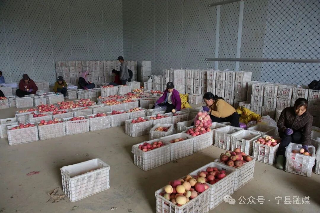 走進(jìn)寧縣金橋果業(yè)農(nóng)民專(zhuān)業(yè)合作社的包裝場(chǎng)地,香甜的果味撲鼻而來(lái),10余名工人分工明確,有的將蘋(píng)果按大小、色澤分揀分類(lèi),有的快速稱(chēng)重打包,有的將封裝好的蘋(píng)果整齊碼放,等待裝車(chē)發(fā)售。