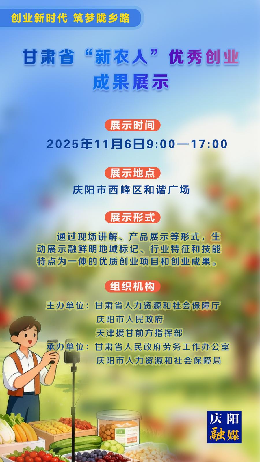 【微海報】甘肅省“新農(nóng)人”優(yōu)秀創(chuàng)業(yè)成果展示11月6日慶陽市西峰區(qū)和諧廣場展出