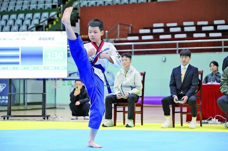 同樣備受關(guān)注的,還有跆拳道賽場(chǎng)。近日,2025-2026年跆拳道大滿(mǎn)貫世青俱樂(lè)部聯(lián)賽·慶陽(yáng)站比賽在市體育館舉行,吸引慶陽(yáng)及周邊地市的17支代表隊(duì)280名選手參與獎(jiǎng)牌爭(zhēng)奪。此次比賽項(xiàng)目豐富,涵蓋個(gè)人與團(tuán)體競(jìng)技、品勢(shì)、快腿王、擊破及VR虛擬競(jìng)技等,按年齡細(xì)分為14個(gè)級(jí)別。賽場(chǎng)上,選手們身著潔白道服,精神抖擻,伴隨著清脆響亮的吶喊聲,一次次精準(zhǔn)完成橫踢、下劈、后旋踢等技術(shù)動(dòng)作。