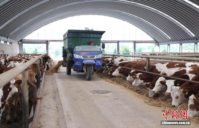中新網(wǎng)蘭州11月4日電 (盤小美)秋日午后,甘肅省慶陽市西峰區(qū)耀輝養(yǎng)殖農民專業(yè)合作社內,標準化養(yǎng)殖棚錯落排布,不同生長階段的肉牛在對應飼養(yǎng)區(qū)悠閑進食。該合作社理事長張少華與幾名工人正在儲備飼料、添食加水、清掃棚舍,忙碌身影在棚間不停穿梭。