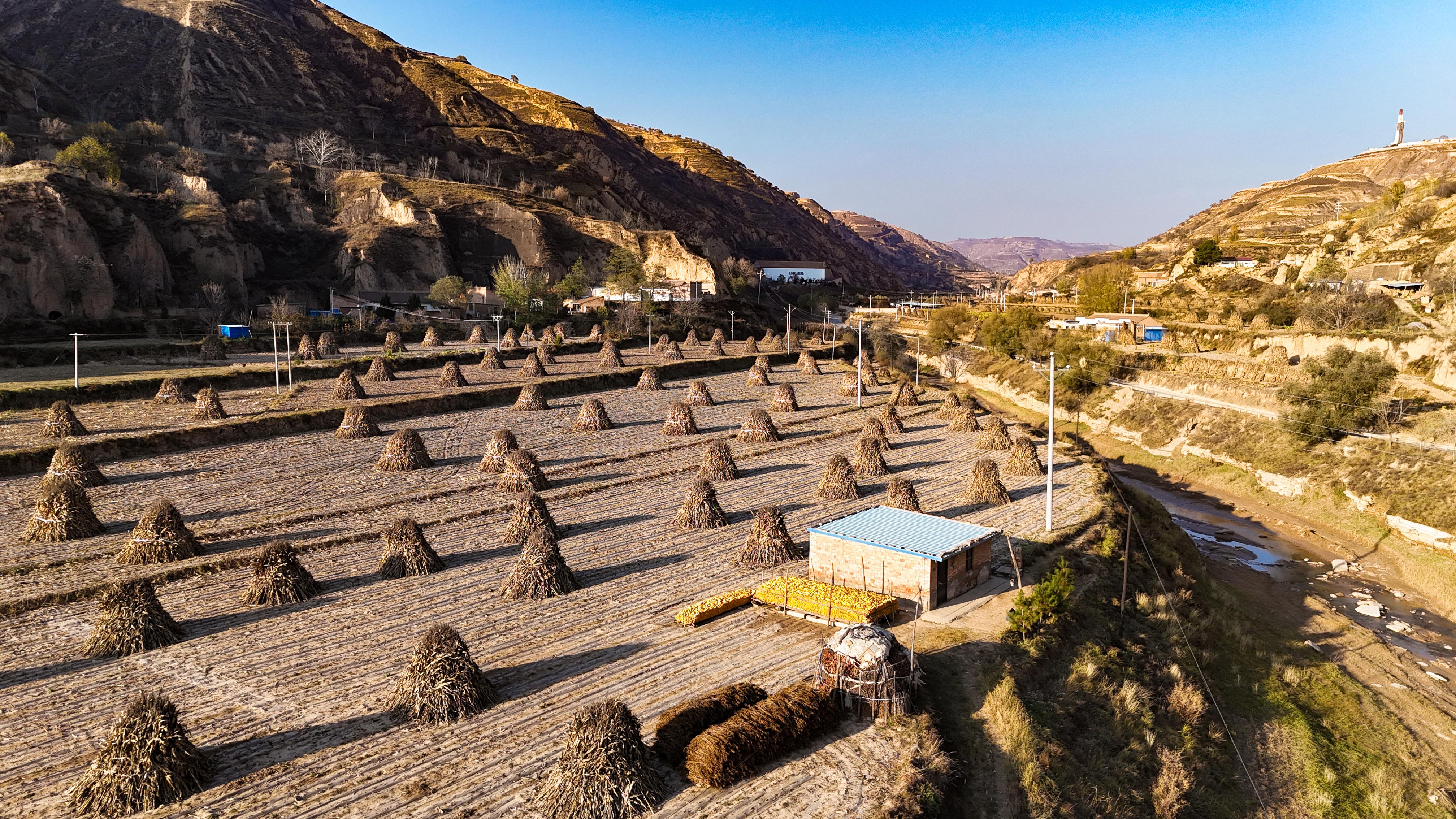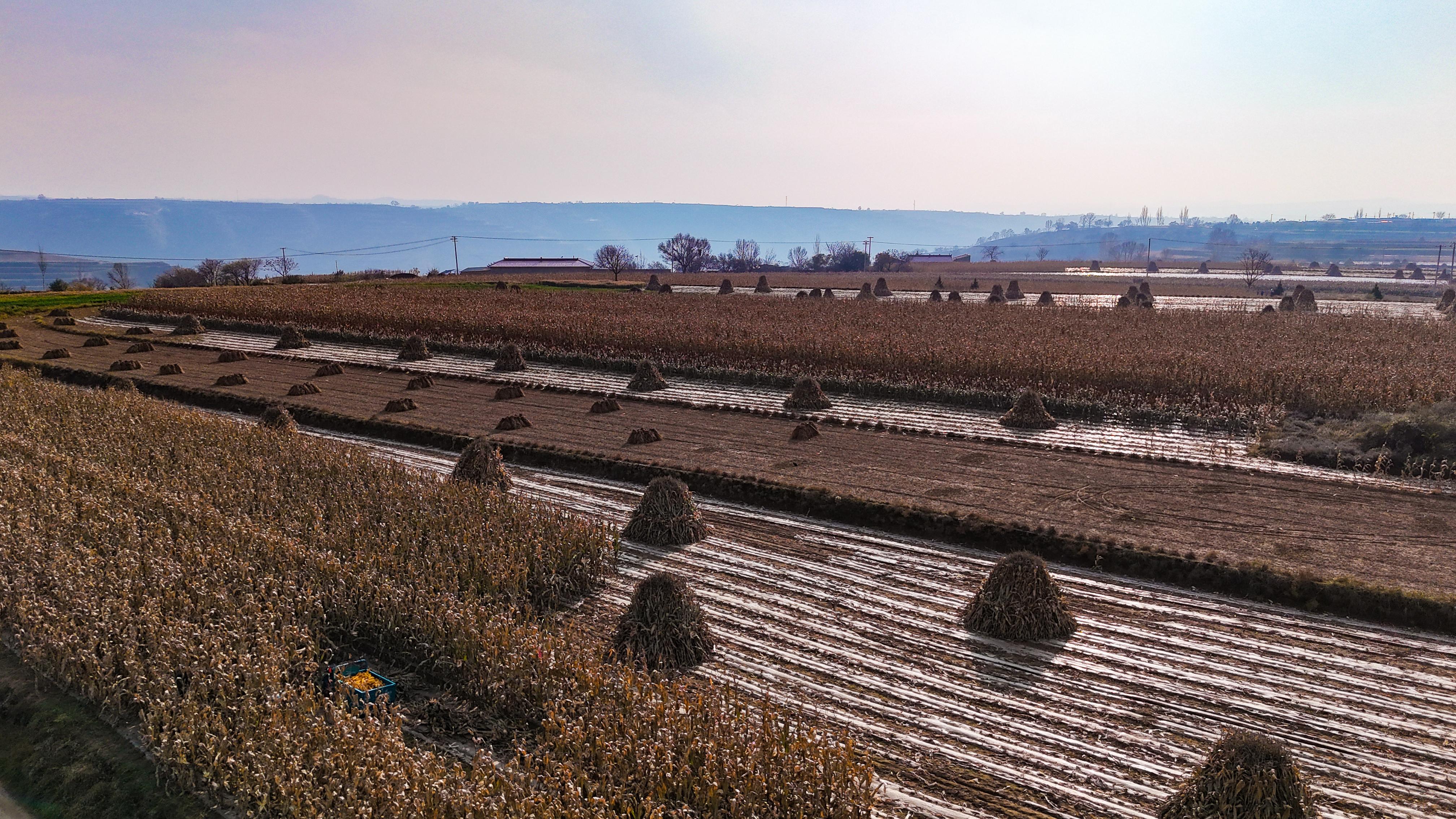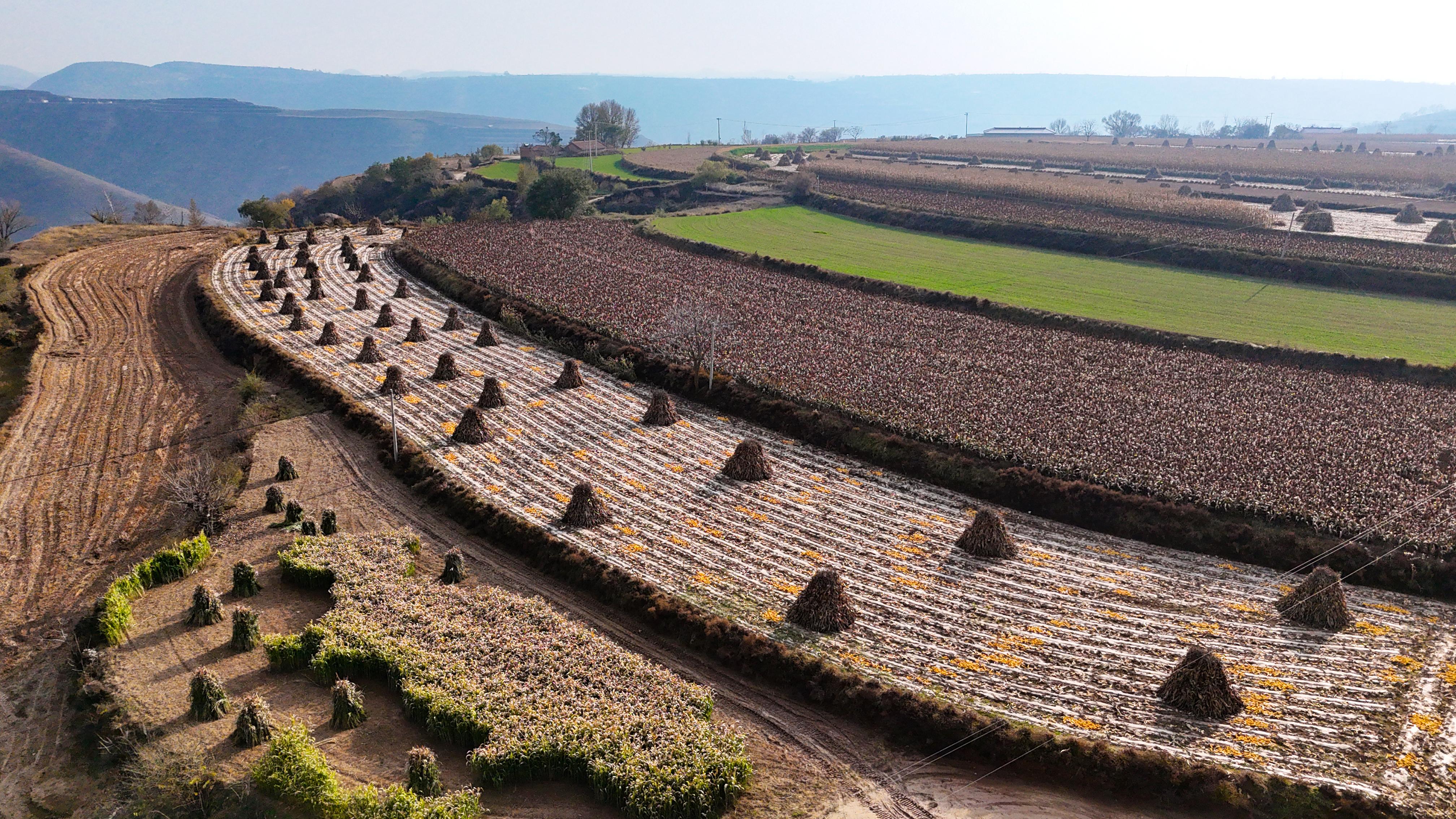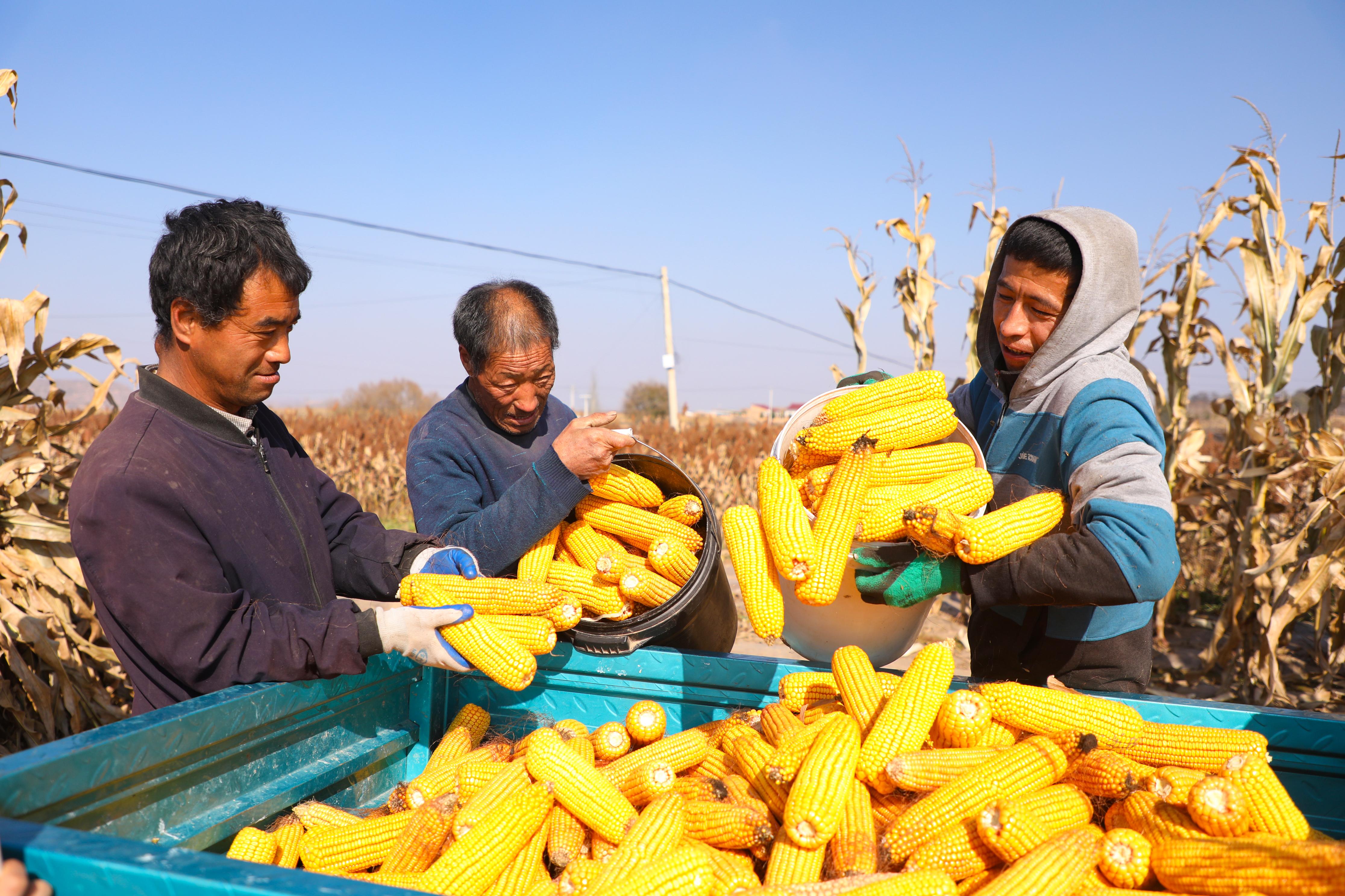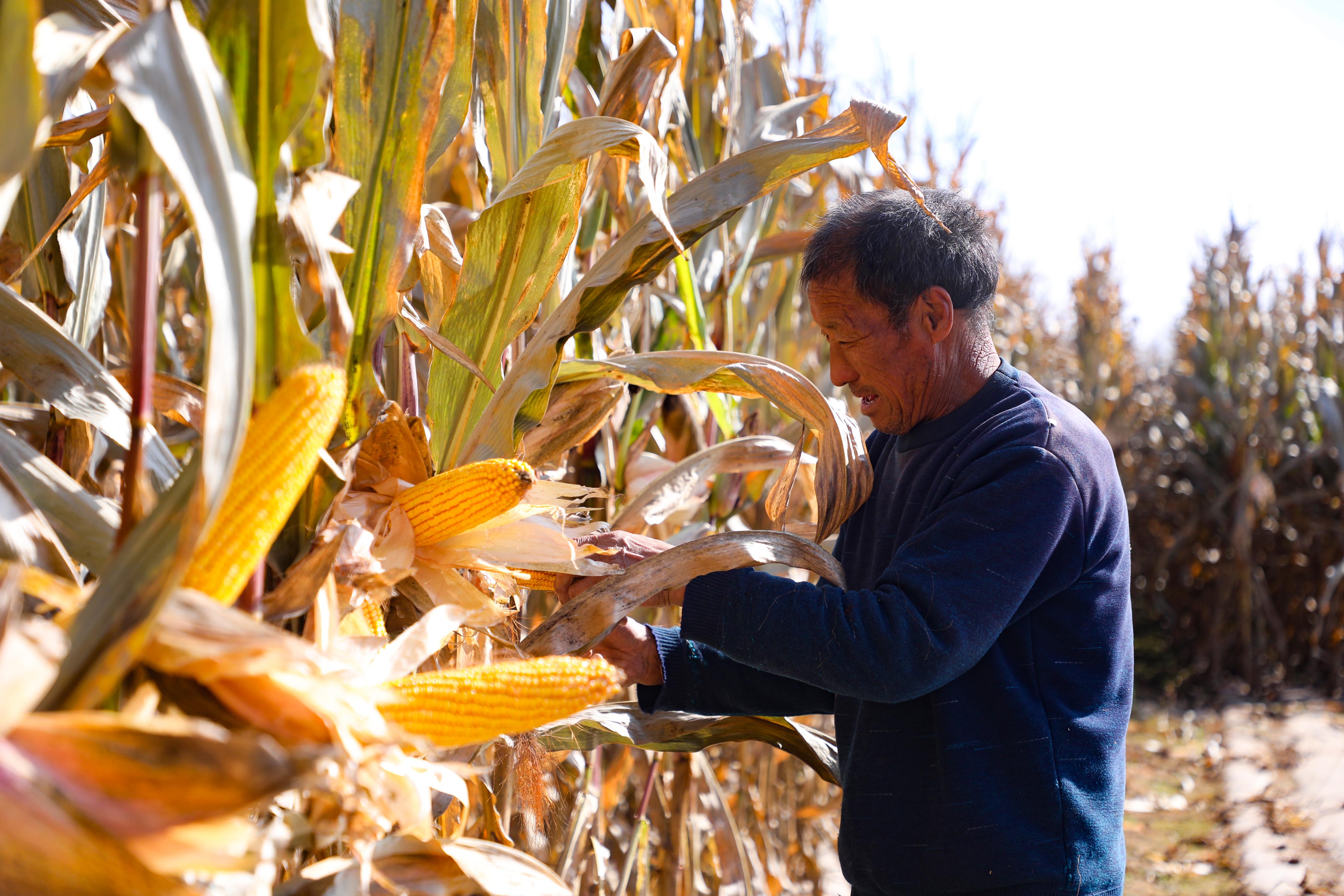 既有秋收玉米的金黃喜悅,