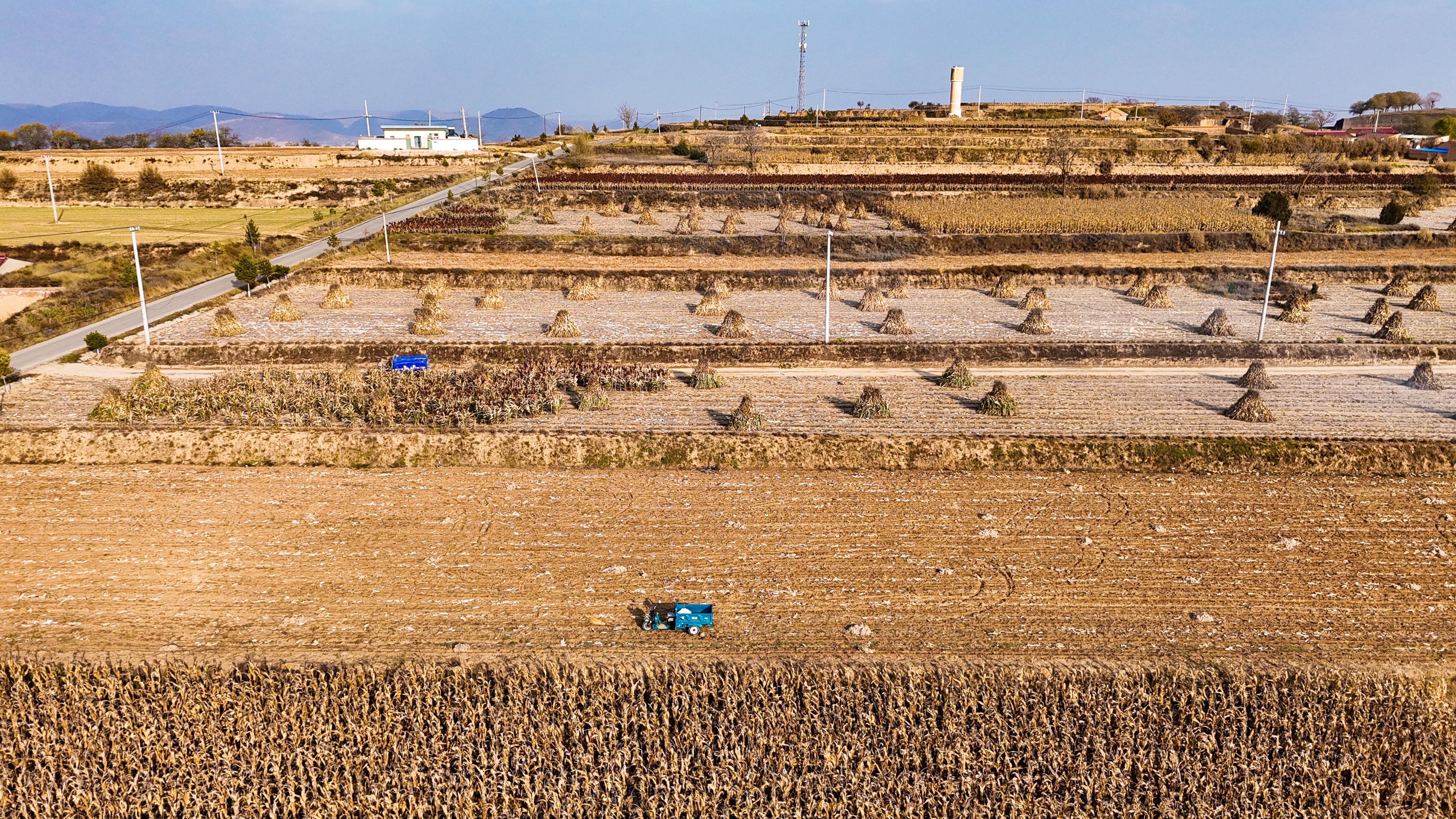 秋陽灑遍沃野,田間忙碌正酣。