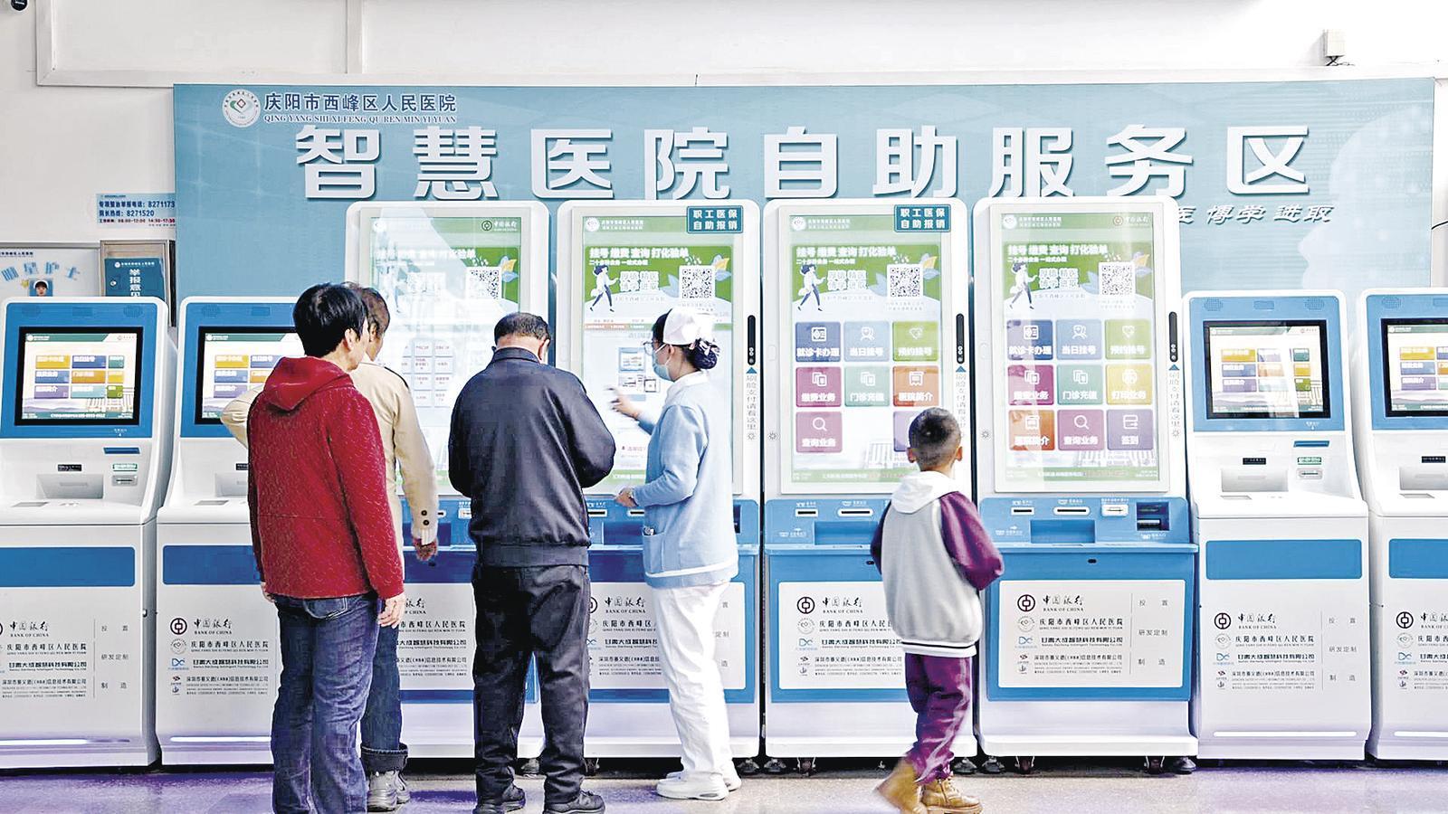 西峰區(qū)人民醫(yī)院智慧醫(yī)院自助服務(wù)區(qū)。