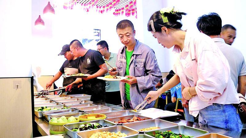 在西峰區(qū)慶州東路社區(qū)餐吧,居民有序打餐。
