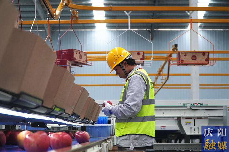工人檢查自動分揀線上的蘋果。慶陽融媒記者 路世玲攝
