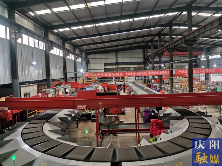 慶陽市郵政快遞機械化分揀流水線。慶陽融媒記者 路世玲攝