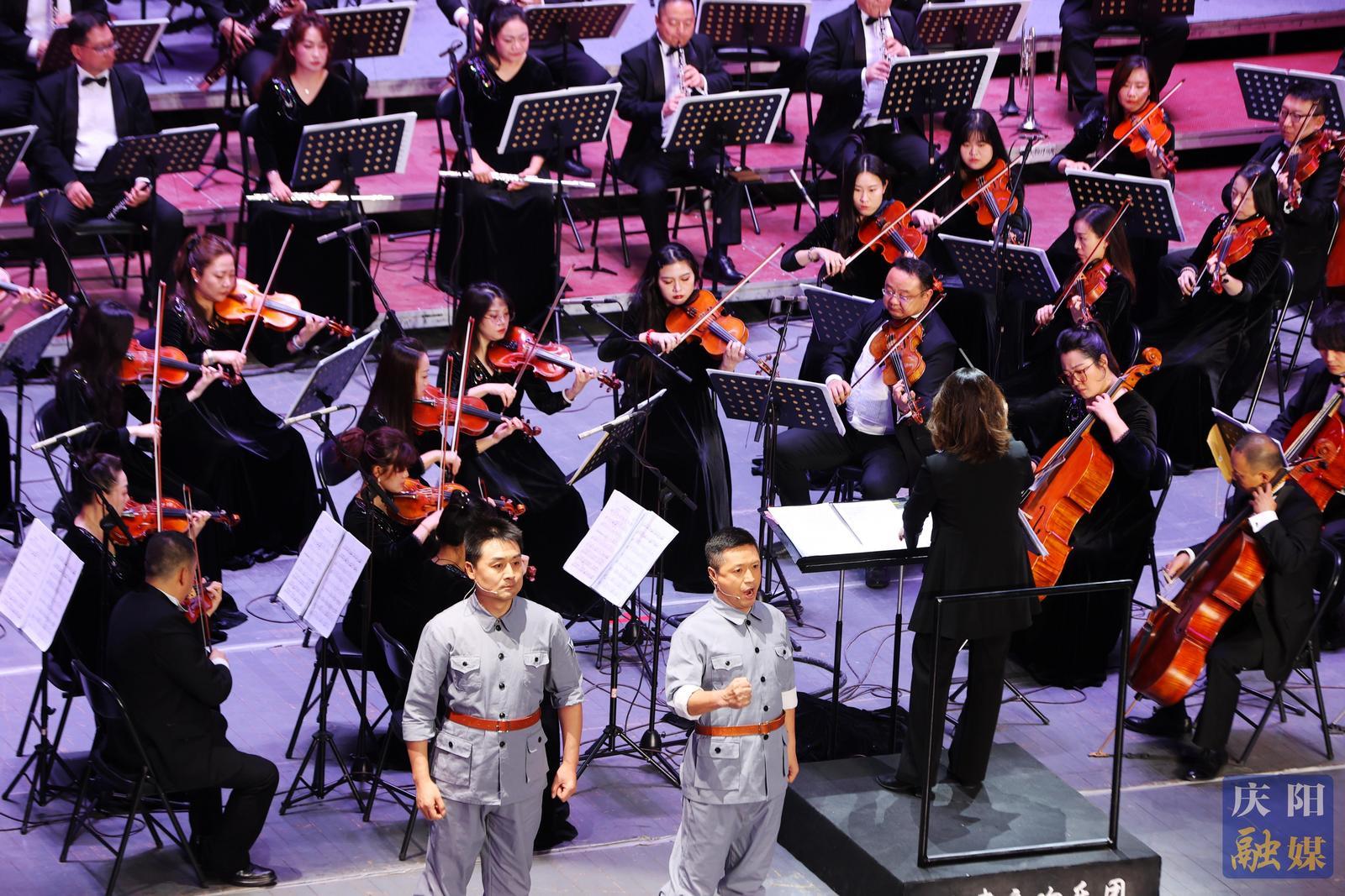 音樂會以“賡續(xù)紅色血脈 傳承南梁精神”為主題,特邀甘肅省歌劇院交響樂團(tuán),18位著名歌唱家攜手慶陽四大合唱團(tuán)共140余名演職人員登臺獻(xiàn)藝。演出以混聲合唱、情景表演唱等多元形式,完整呈現(xiàn)11首組歌與3首慶陽經(jīng)典民歌,《厚土》勾勒黃土地滄桑,《烽火陜甘邊》還原革命壯闊場景,尾聲《永遠(yuǎn)的南梁》將氛圍推向高潮,沉浸式體驗讓觀眾重溫陜甘邊革命根據(jù)地“落腳點與出發(fā)點”的光輝歷程。