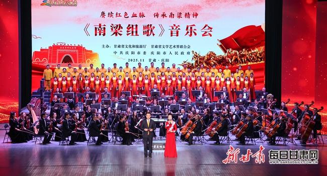 《南梁組歌》由原濟(jì)南軍區(qū)政治部文工團(tuán)創(chuàng)作室主任馬正建等作詞,原東方演藝集團(tuán)首席作曲家張大力譜曲,軍旅女高音梁辰擔(dān)任藝術(shù)指導(dǎo)。此次音樂會系《南梁組歌》首演,以“賡續(xù)紅色血脈傳承南梁精神”為主題,由甘肅省歌劇院交響樂團(tuán)演奏,18位著名歌唱家現(xiàn)場獻(xiàn)聲,慶陽市藝潤教師合唱團(tuán)、慶陽隴劇院有限責(zé)任公司、慶陽市東方紅小學(xué)童聲合唱團(tuán)共同演繹。演出以混聲合唱、情景表演唱等多元形式,完整呈現(xiàn)了11首組歌與3首慶陽經(jīng)典民歌,以樂為媒回望崢嶸歲月,以聲傳情賡續(xù)紅色基因,讓南梁精神在激昂旋律中永葆初心力量,讓革命薪火在嘹亮歌聲中照亮奮進(jìn)征程。